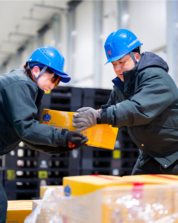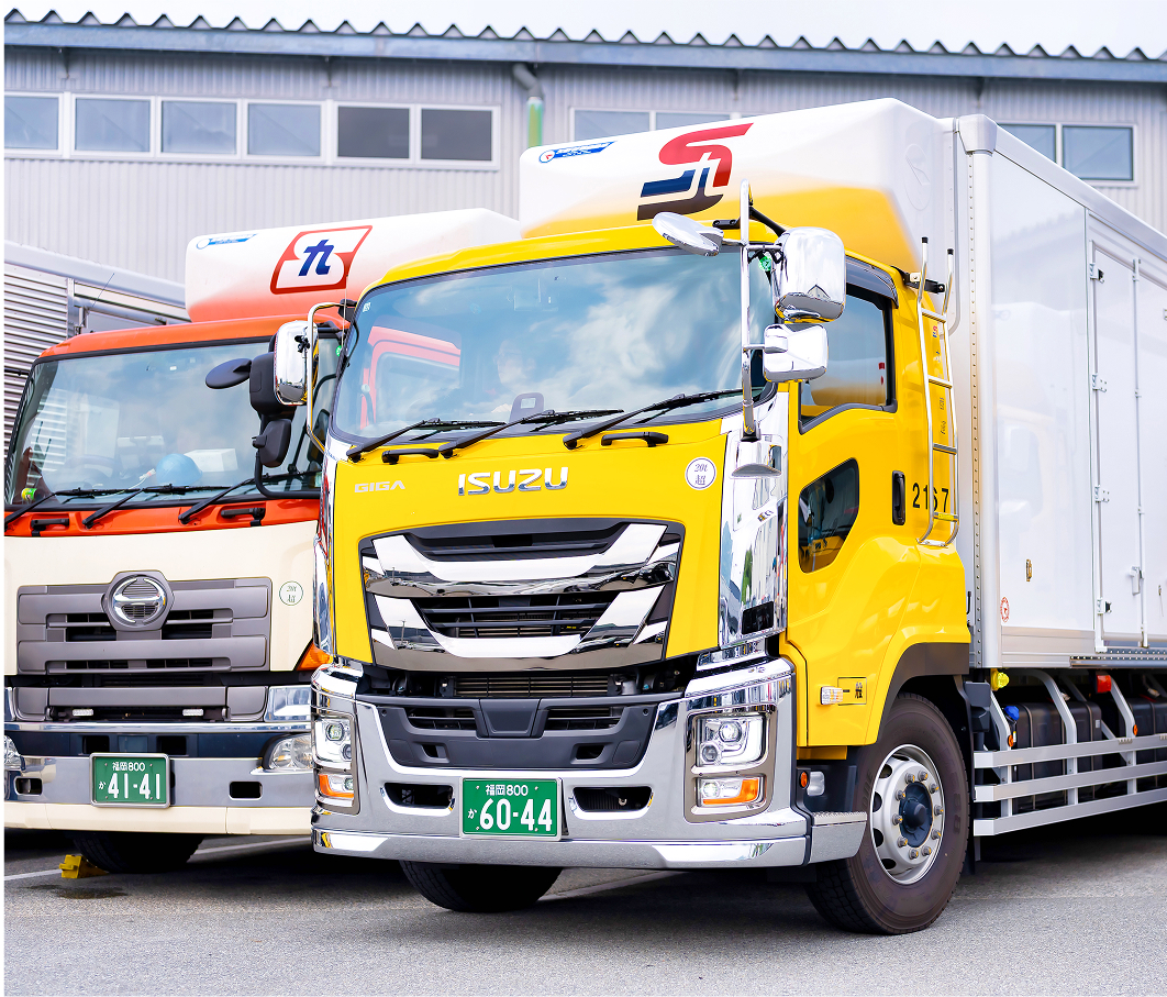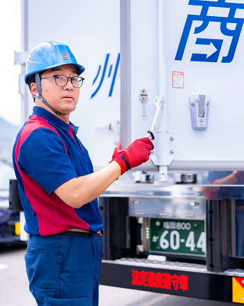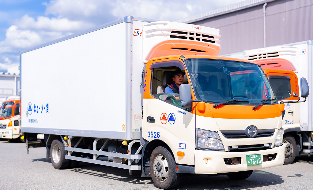 九州はもとより、京阪神~関東エリアに冷凍・チルド食品、常温品の輸送サービスを提供いたします。「確実・丁寧」をモットーに、お預かりしたままの状態でお客様へお届けします。 当社は全車両にデジタルタコグラフ、ドラレコを装着し、高い安全性を確保しつつ、温度管理機能付きGPSシステムを搭載し、徹底した品質管理を行っております。何より、発着双方のお客様が笑顔になれるよう、真心を込めて輸送します。