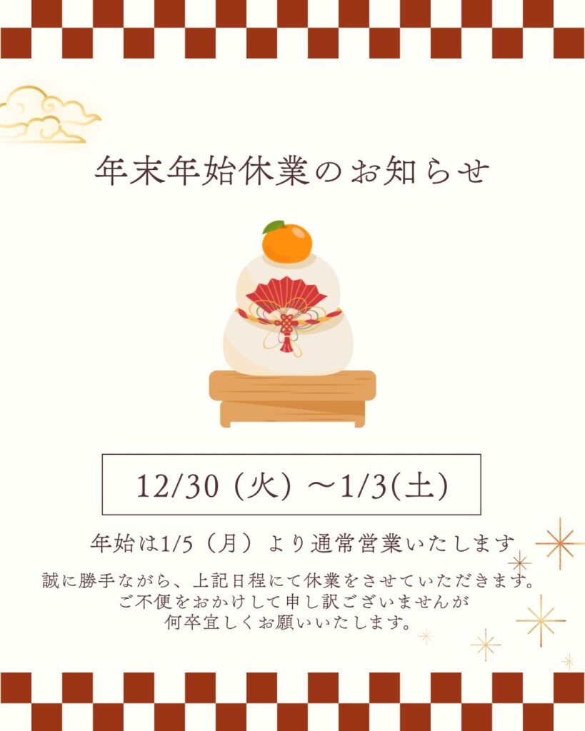 【年末年始休業のお知らせ】